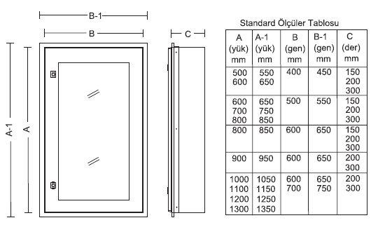 Duvar tip sıva altı camlı kapılı paslanmaz panolar;